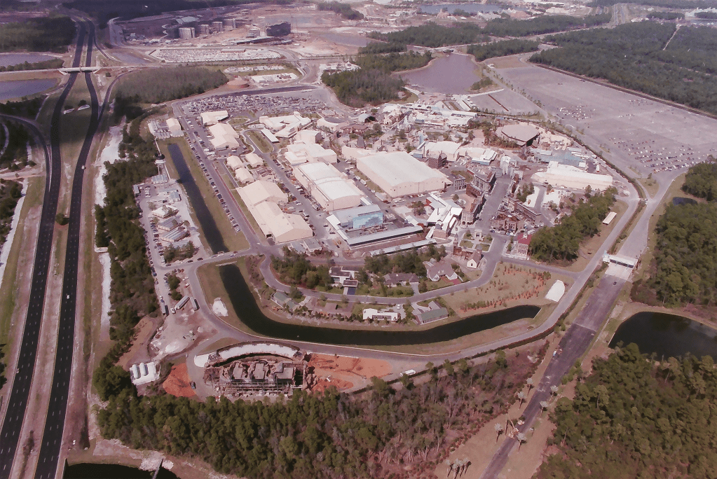 This view shows soundstages on the left & Great Movie Ride on the right.