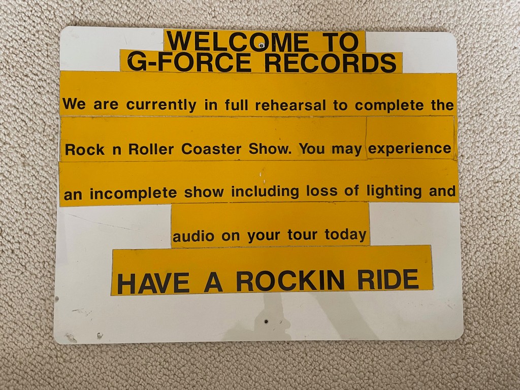 Safety sign Rock n Roller Coaster during test phase